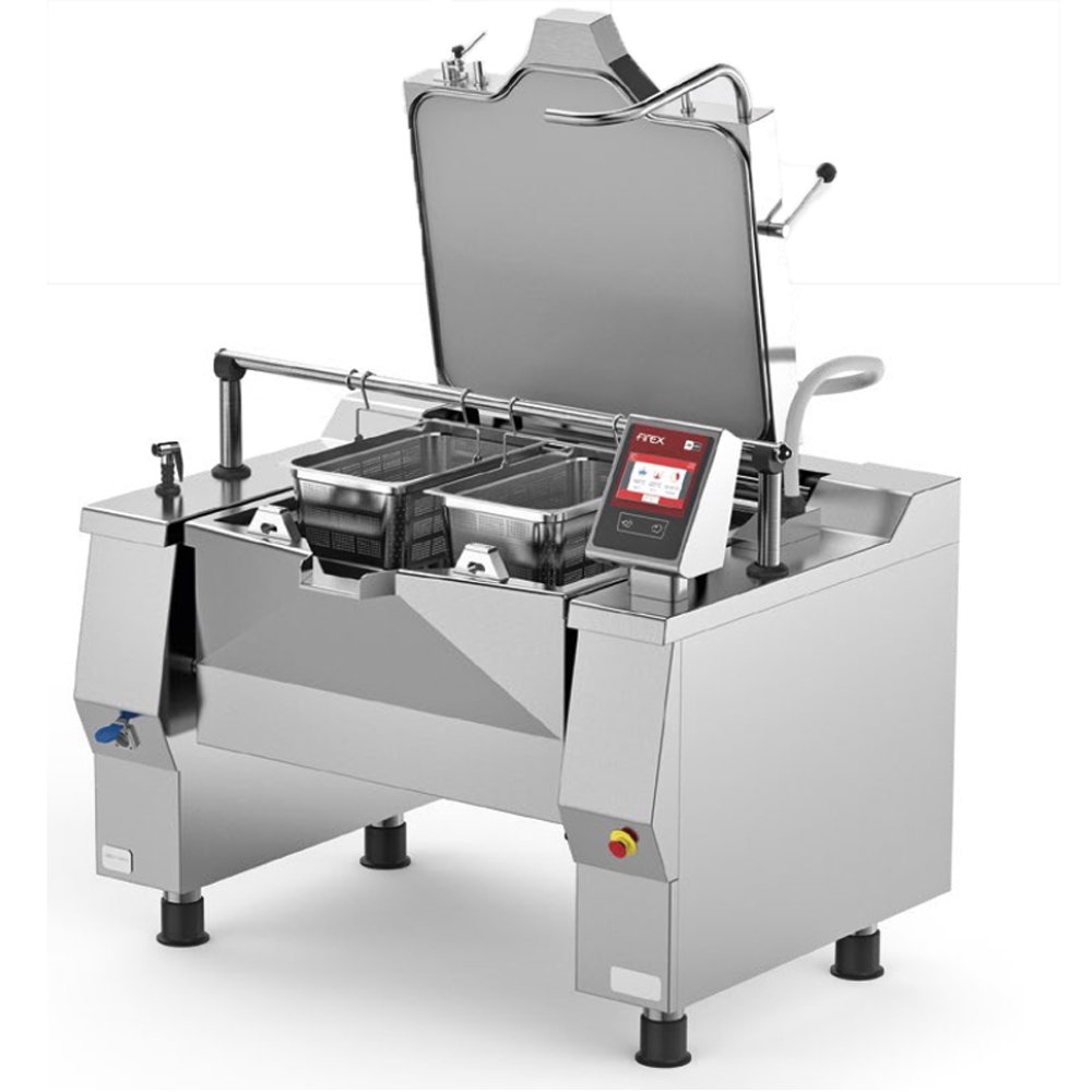 Firex DBRG110-C V1 Ανακλινόμενη χύτρα ταχύτητας με ανύψωση καλαθιού και άμεση θέρμανση αερίου 110L