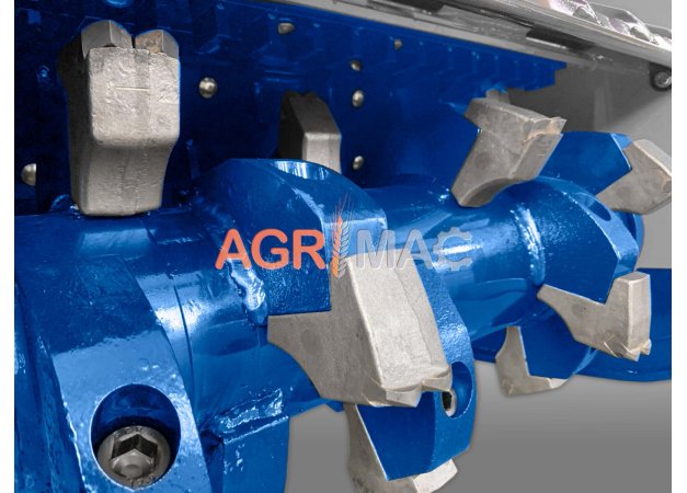 - Ψηφιακά ζυγισμένο στροφείο με δύο ελικοειδείς σειρές ειδικών σφυριών κατάλληλων για δασοκομία συνολικής διαμέτρου 380mm.