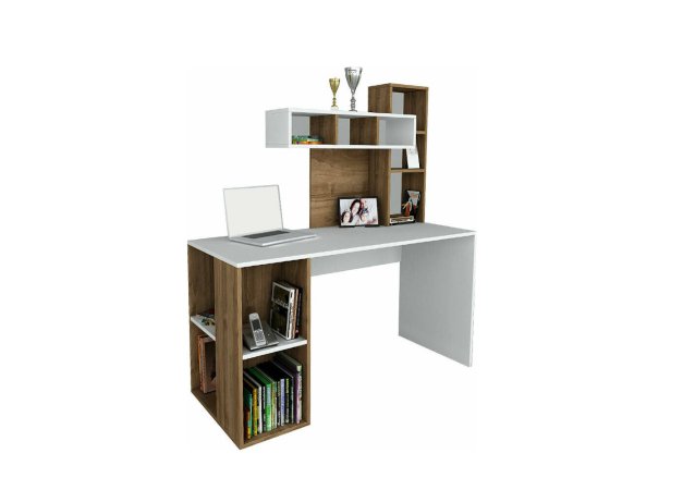 Γραφείο εργασίας PWF-0436 Pakoworld με ραφιέρα λευκό-καρυδί