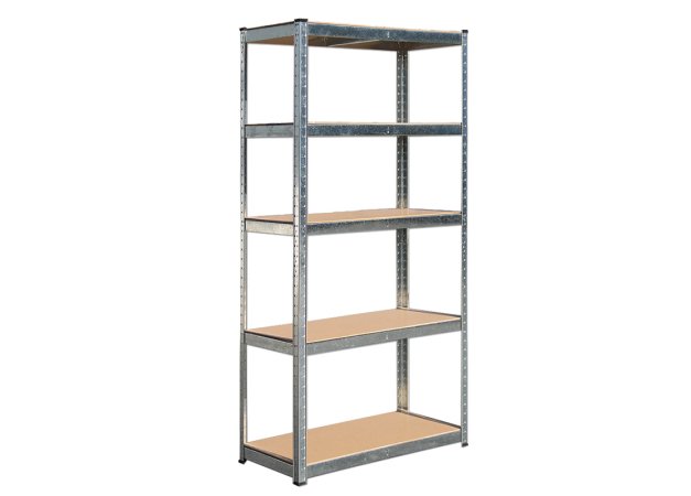 Ραφιέρα γαλβανιζέ με 5 ξύλινα ράφια mdf κουμπωτά. Είναι στιβαρή, εύκολη στη συναρμολόγηση χωρίς την χρήση εργαλείων και ανθεκτική στις καιρικές συνθήκες.