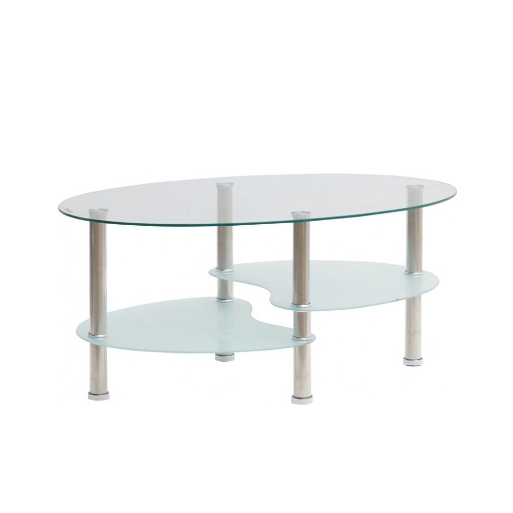 Τραπεζάκι Σαλονιού Οβάλ γυάλινο λευκό Ankor