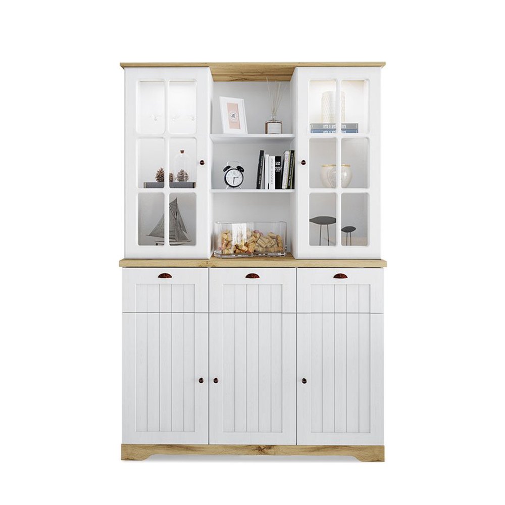 Βιτρίνα Snow Pakoworld με led strip χρώμα λευκό με νερά-sonoma