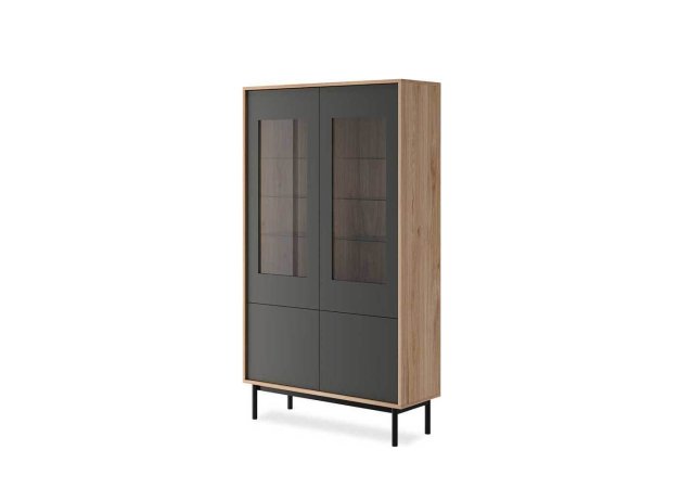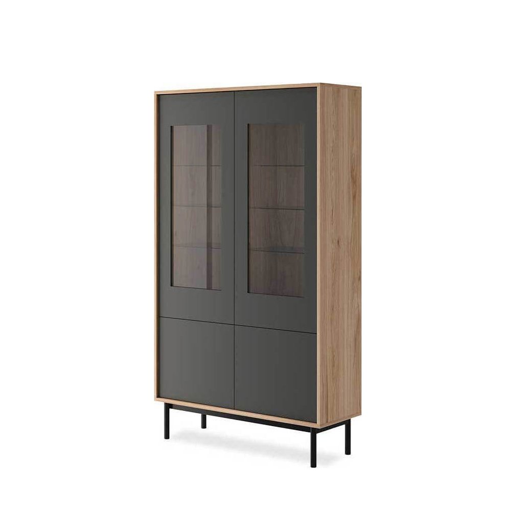 Βιτρίνα - βιβλιοθήκη Basic Pakoworld με τζάμι χρώμα φυσικό - μαύρο ματ