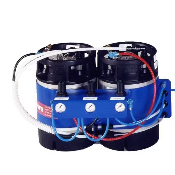 - Αποτελείται από δύο κάδους των 10lt, έναν για την κόλλα και έναν για τον ενεργοποιητή, καθώς και ένα ειδικό πιστόλι ψεκασμού, εξωτερικής ανάμιξης των δύο υλικών, τύπου BRAVO