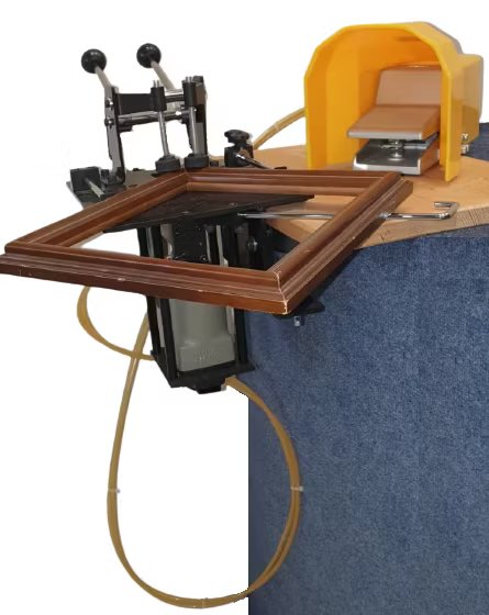- Εξυπνη ενδιάμεση λύση, μεταξύ του καρφωτικού χειρός & της καρφωτικής μηχανής κορνιζών.