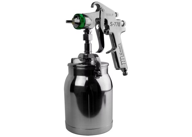 - Πιστόλι βαφής κάτω βάζο 1,00 kg, HVLP (Υψηλού Όγκου Χαμηλής Πιέσεως), με ρύθμιση πιέσεως, ποσότητας και βεντάλιας και ασφάλιση βάζου με κλείστρο