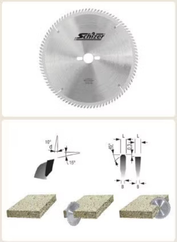- Για σύνθετα υλικά ξύλου (Νοβοπάν, MDF) χωρίς ή με επένδυση (Μελαμίνη, Καπλαμά) με special ή κοίλη διαμόρφωση δοντιών για άψογο φινίρισμα κοπής