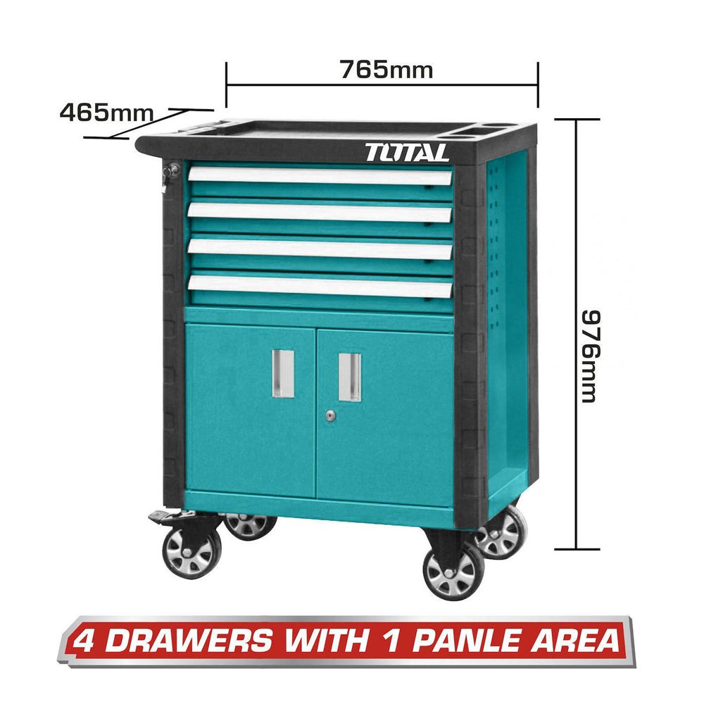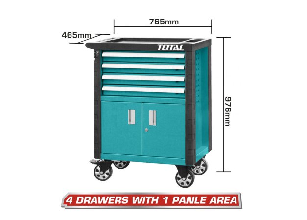 Total Τροχήλατος Μεταλλικός Εργαλειοφόρος με 4 Συρτάρια και Ντουλάπι Π76.5xΒ46.5xΥ97.6εκ.