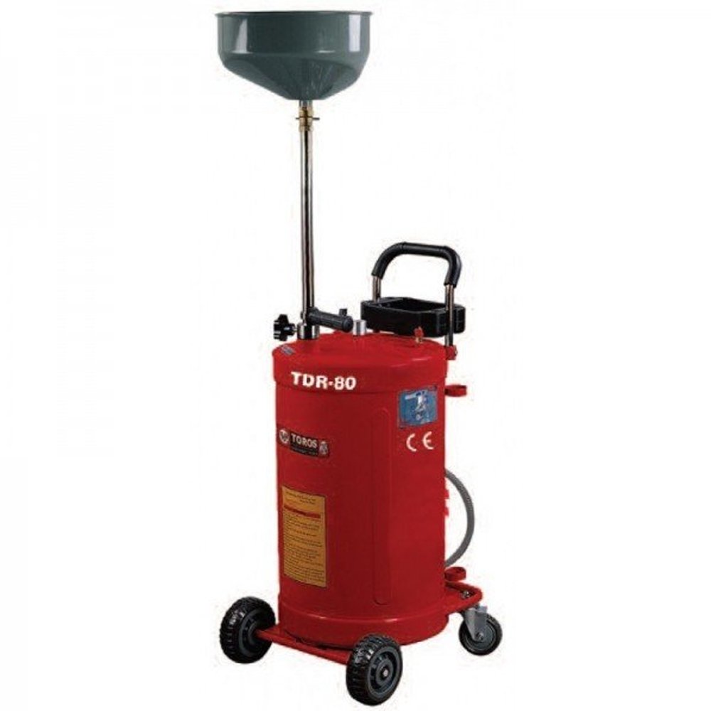 - Τροχήλατη λαδιέρα TOROS 80 lt, για τη συλλογή των λαδιών της μηχανής ή της βαλβολίνης του κιβωτίου ταχυτήτων των οχημάτων.