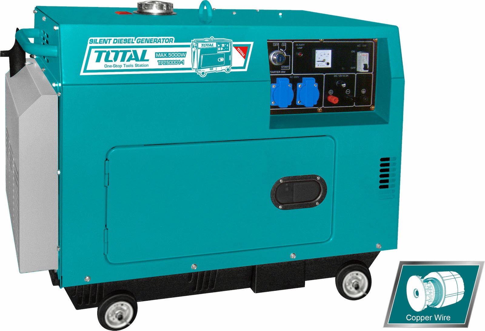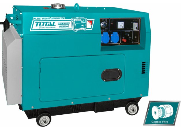 Total Αθόρυβη Γεννήτρια Πετρελαίου με Μίζα, Ρόδες και Μέγιστη Ισχύ 6.2kVA