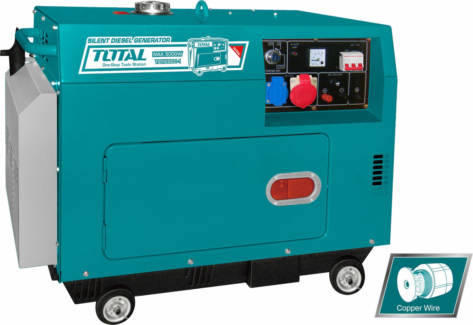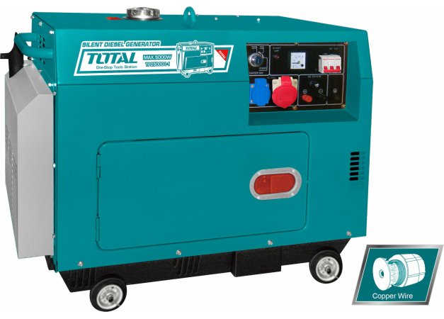 Total Τριφασική Αθόρυβη Γεννήτρια Πετρελαίου με Μίζα, Ρόδες και Μέγιστη Ισχύ 5kVA