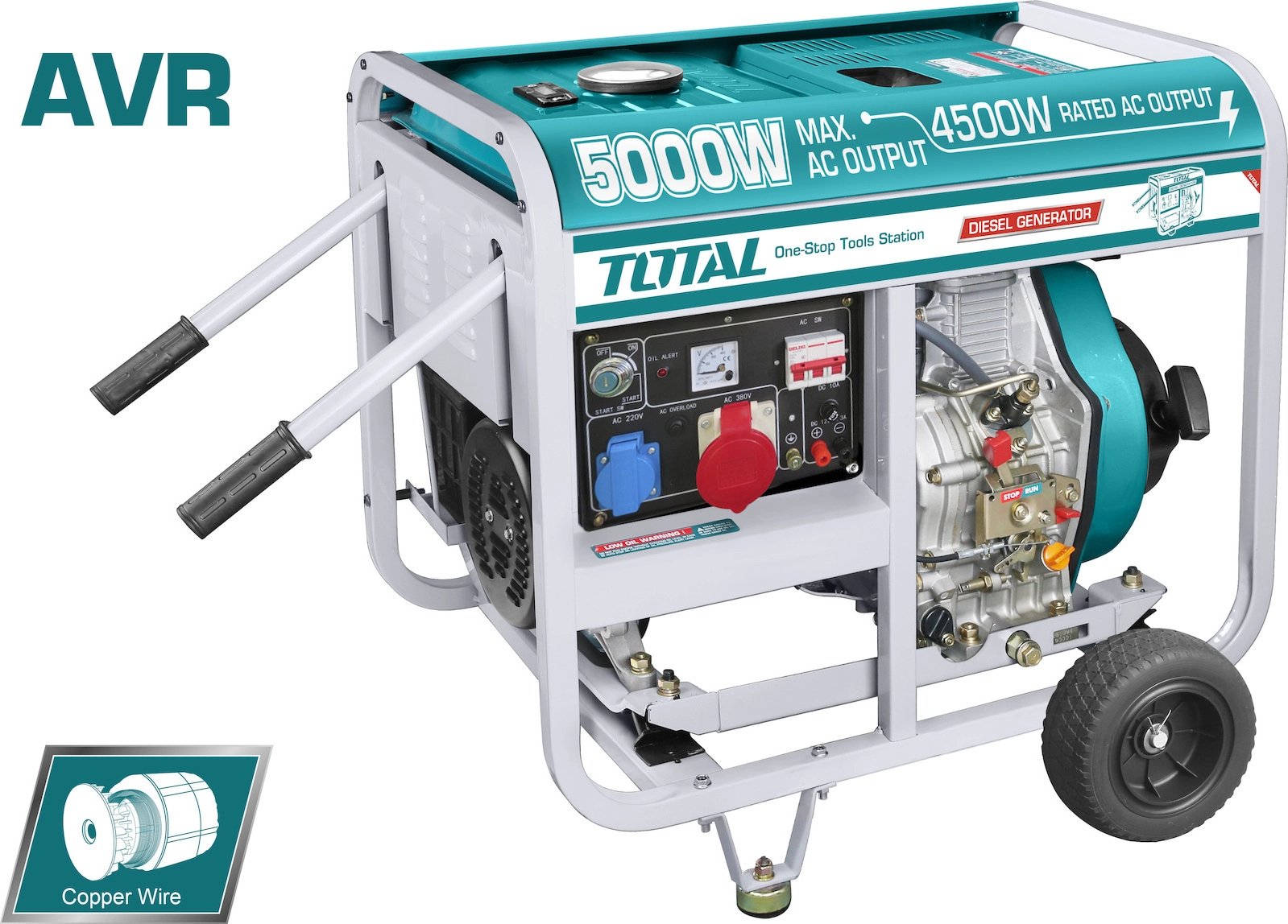 Total Τριφασική Γεννήτρια Πετρελαίου με Μίζα, Ρόδες και Μέγιστη Ισχύ 5.6kVA
