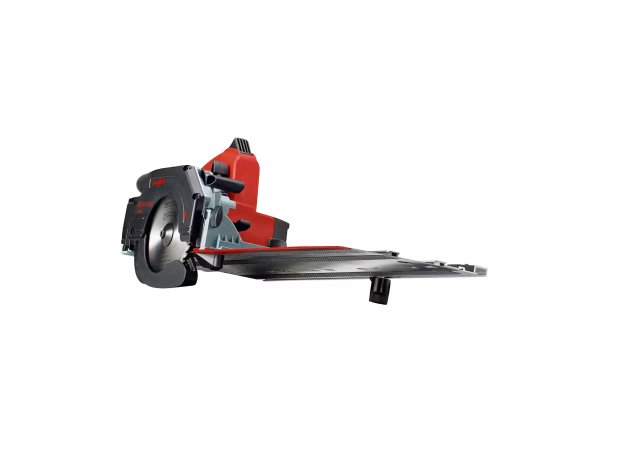 - Η ράγα συνδέεται στο φορητό δισκοπρίονο μέσω ενός κλείστρου γρήγορης απελευθέρωσης