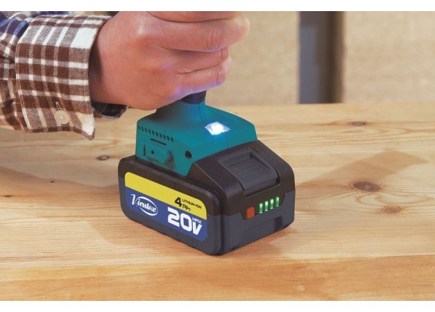- Στον στάνταρ εξοπλισμό περιλαμβάνονται 2 Μπαταρίες Li-Ion των 20V 4Ah (διαθέσιμο και με μπαταρίες 2Ah) που δίνουν στο εργαλείο μεγάλη ισχύ και διάρκεια χρήσης