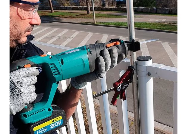 - Σας επιτρέπει να εκτελείτε την κοπή κουφωμάτων, προφίλ αλουμινίου / σιδήρου σε μεταλλικές κατασκευές, σωλήνες PVC ή χαλκού και κηπευτικές εργασίες, όπως κοπή κλαδιών.