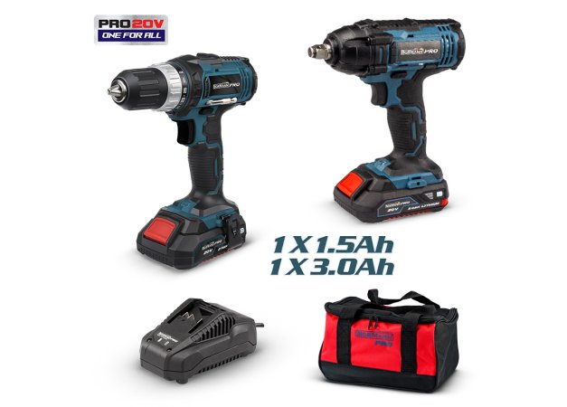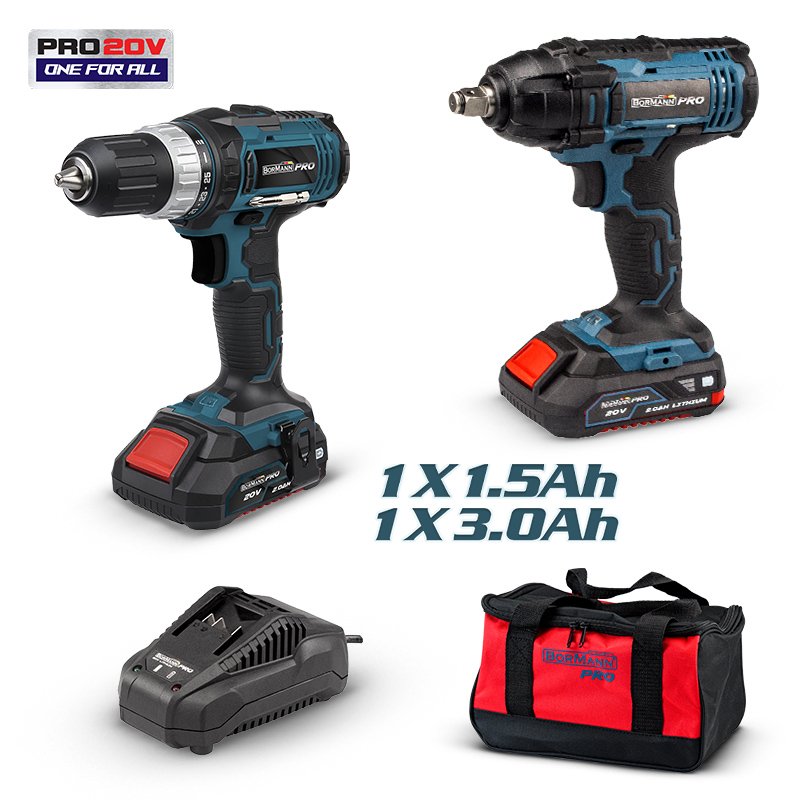 Bormann Pro BBP9005 Σετ Μπουλονόκλειδο & Δραπανοκατσάβιδο 20V με 2 Μπαταρίες