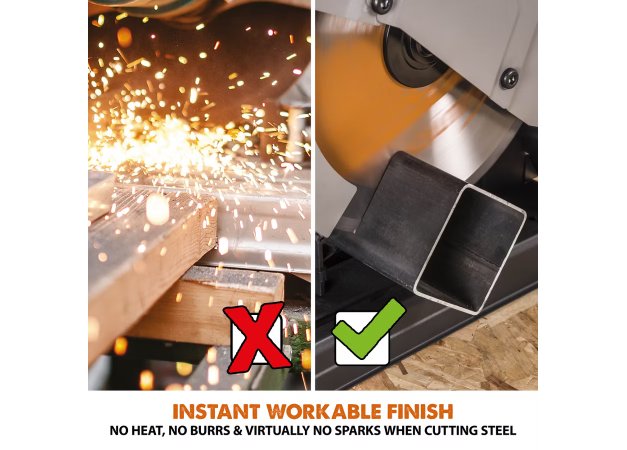 - Κόβει: Σίδερο, αλουμίνιο, χάλυβα, πλαστικό, σκληρό ξύλο, ακόμα και ξύλο με ενσωματωμένες πρόκες, και όλα αυτά με τον ΙΔΙΟ ΔΙΣΚΟ (Δίσκος TCT Multiblade)