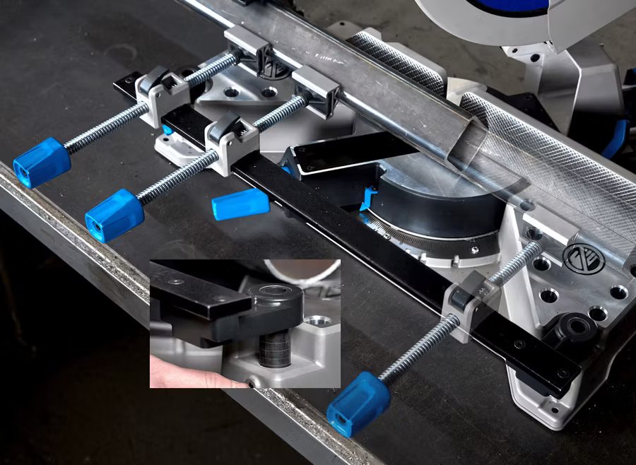 - Παρέχει ακριβή και γρήγορη ρύθμιση της γωνίας κοπής και φέρει έναν ισχυρό μηχανισμό σύσφιξης για να εξασφαλίζει ποιοτικές, επαναλαμβανόμενες κοπές κάθε φορά