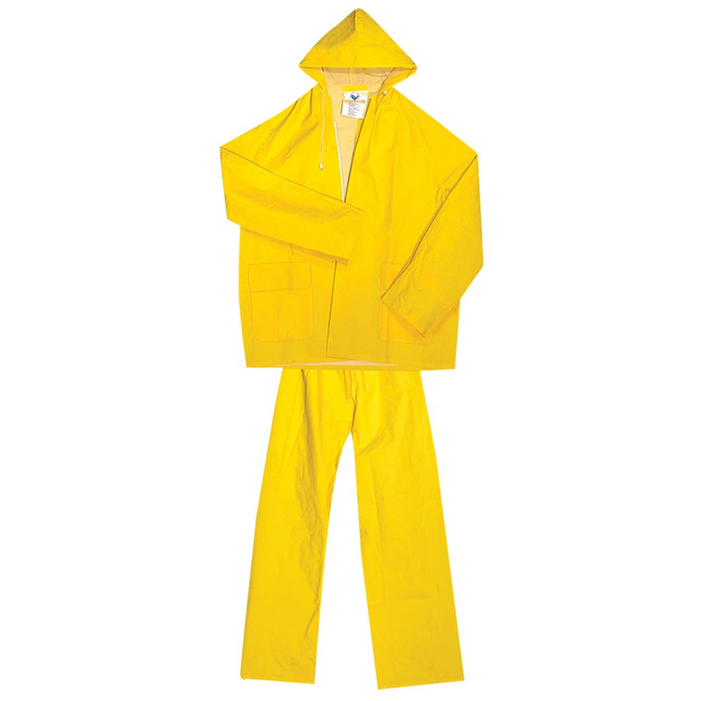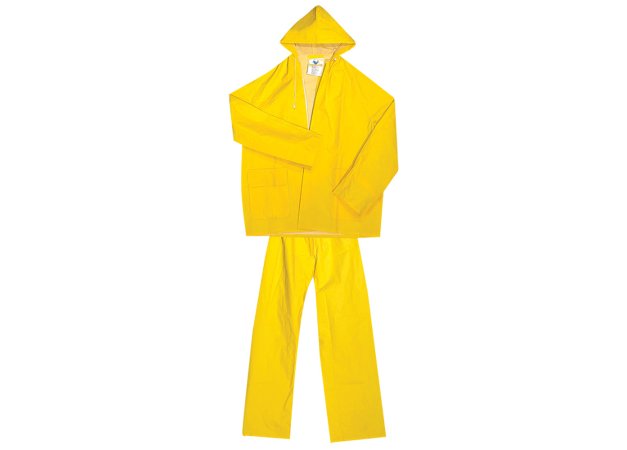- Αδιάβροχο ραμμένο και συγκολλημένο, διπλής επίστρωσης από PVC / Πολυεστέρα / PVC πάχους 0,30mm.Σταθερή κουκούλα με κορδόνι, κλείσιμο με καλυμμένο φερμουάρ και κουμπιά πίεσης από PVC. Κάπα στην πλάτη με οπές αερισμού όπως και στις μασχάλες.Καρποί με εσωτερικό λάστιχο, 2 μπροστινές τσέπες και παντελόνι με λάστιχο στη μέση.