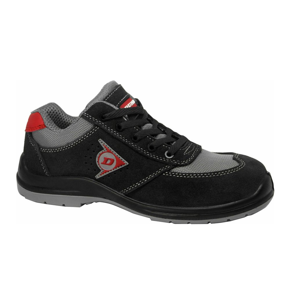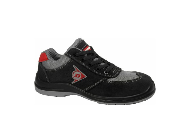 Παπούτσι εργασίας της εταιρείας Dunlop, το οποίο παρέχει προστασία δακτύλων κατά των χτυπημάτων και διαθέτει αντιολισθητική, αντιστατική και αντιδιατρητική σόλα βάσει του προτύπου ασφαλείας S1P.