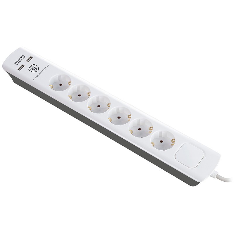 Bulle Πολύπριζο Ασφαλείας 6 Θέσεων με Διακόπτη, 2 USB και Καλώδιο 1.5m Λευκό