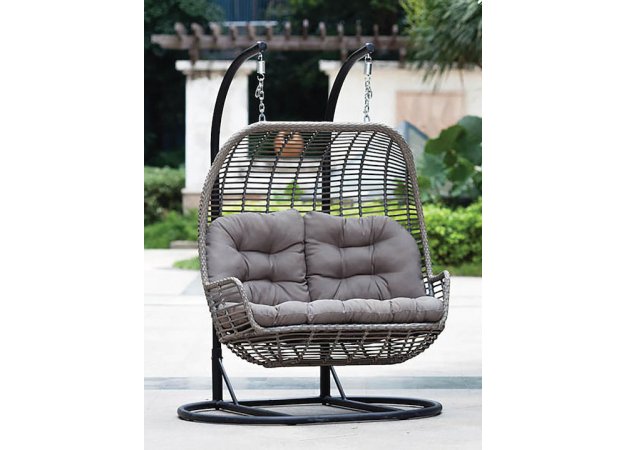 Κούνια Φωλιά με Βάση 2 Θέσεων Rattan Γκρι Μ150xΠ69xΥ135cm