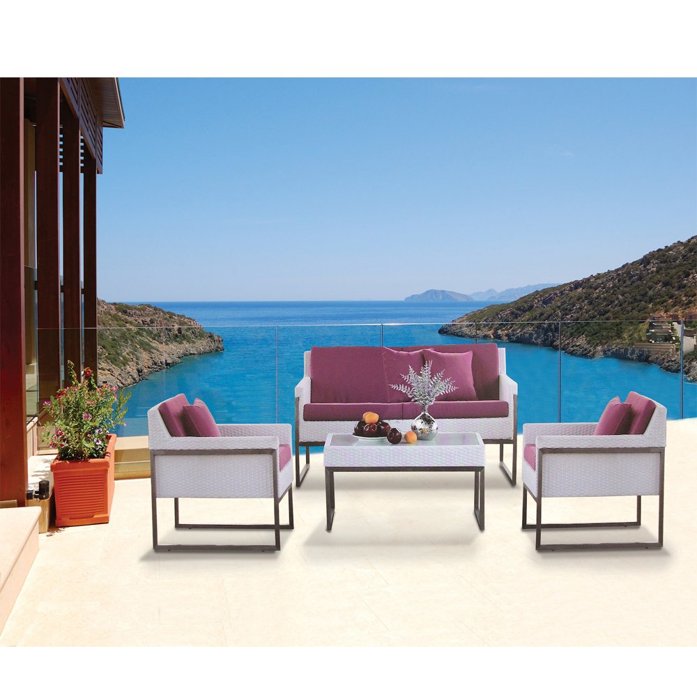 Καθιστικό Σετ Rattan 4 Τεμαχίων Με Ανοξείδωτο Σκελετό