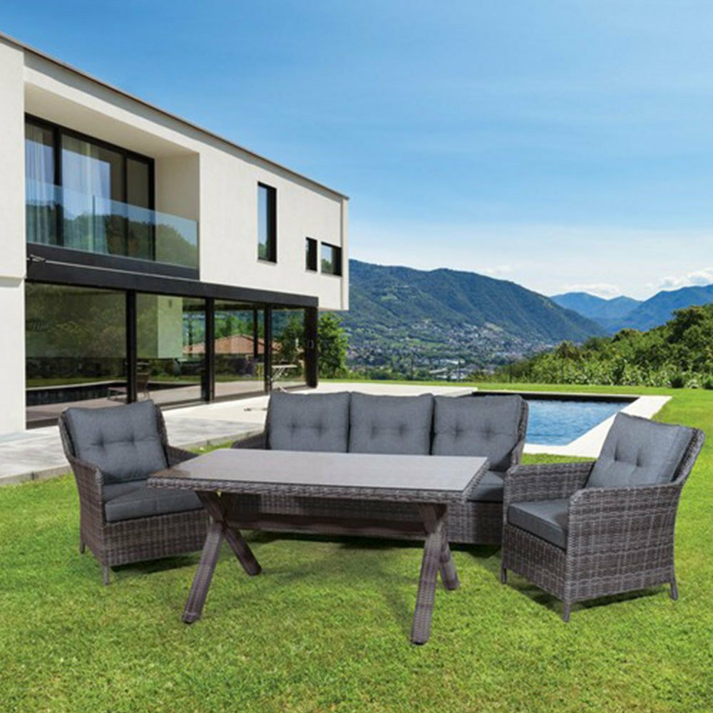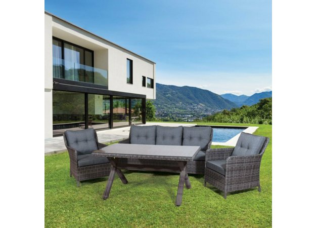 Τραπεζαρία - Καθιστικό Rattan Σετ 4 Τεμαχίων με Αλουμίνιο Σκελετό