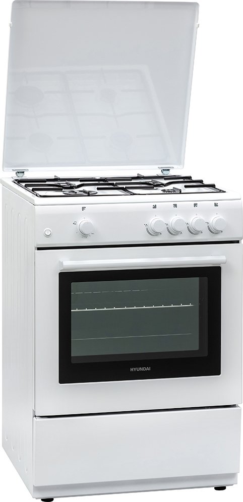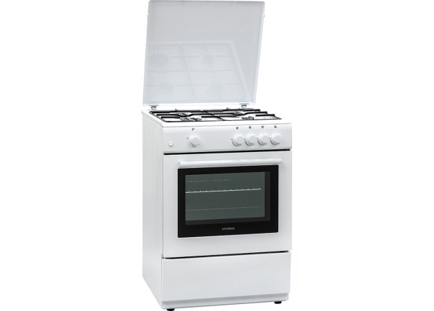 - Κουζίνα Hyundai HCG19-72L604G/W με φούρνο αερίου, μεγάλη χωρητικότητα φούρνου 72 λίτρα, ενεργειακή κλάση Α, 4 εστίες αερίου και 5 λειτουργίες ψησίματος.