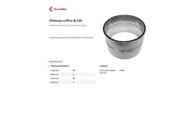 Kratki KRYZA/KOMINOWA/220/STAL Μούφα Σύνδεσης Καπνοδόχου Μεταλλική 220mm Ασημί