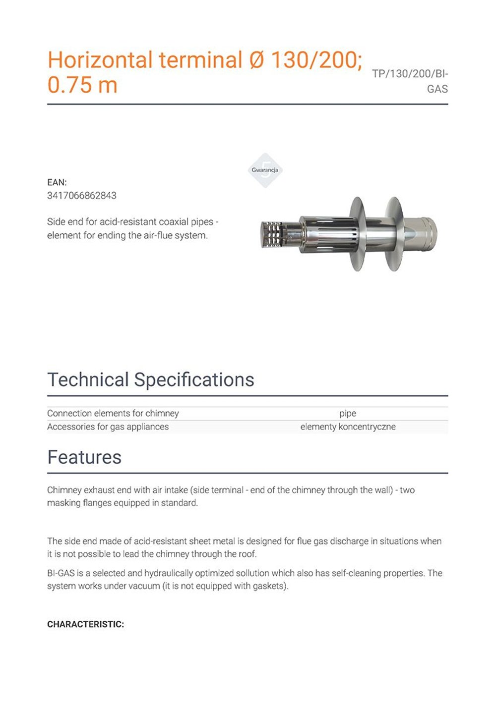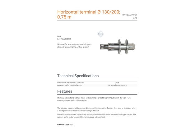 - Καπέλο καμινάδας σόμπας ομοαξονικό οριζόντιο για φυσικό αέριο και γκάζι με διάμετρο Φ130/200