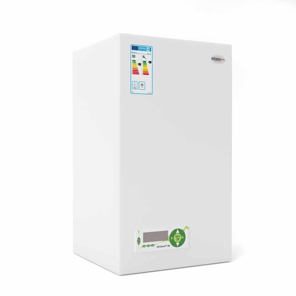 Ο επιτοίχιος λέβητας MKdens25 C38GC25 της εταιρείας Kober, μπορεί να καλύψει χώρους έως και 150 m². Λειτουργεί με αέριο και μέσω καύσης θερμαίνει το νερό, το οποίο μεταφέρεται μέσω σωληνώσεων για να ζεστάνει τα θερμαντικά σώματα.