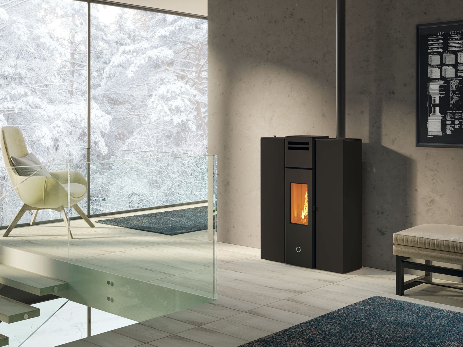 - Αεροστεγής σόμπα πέλλετ με μόνο 30,5 cm βάθος με γραμμικό σχεδιασμό, ιδανική για το διάδρομο αλλά κατάλληλη για κάθε δωμάτιο του σπιτιού.