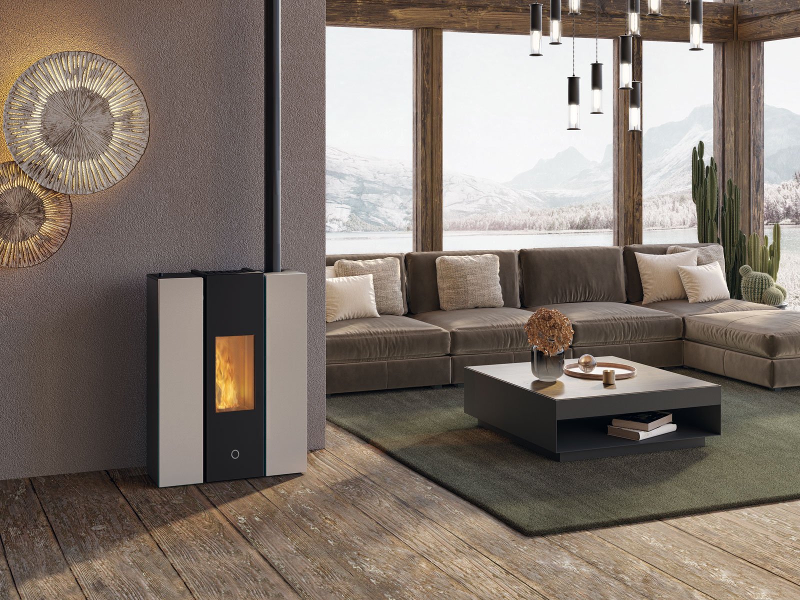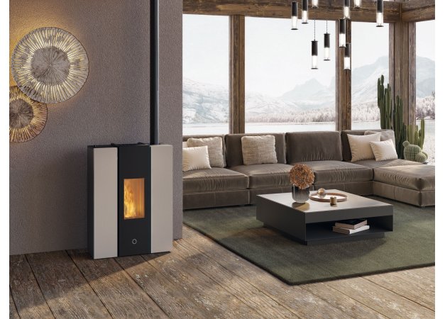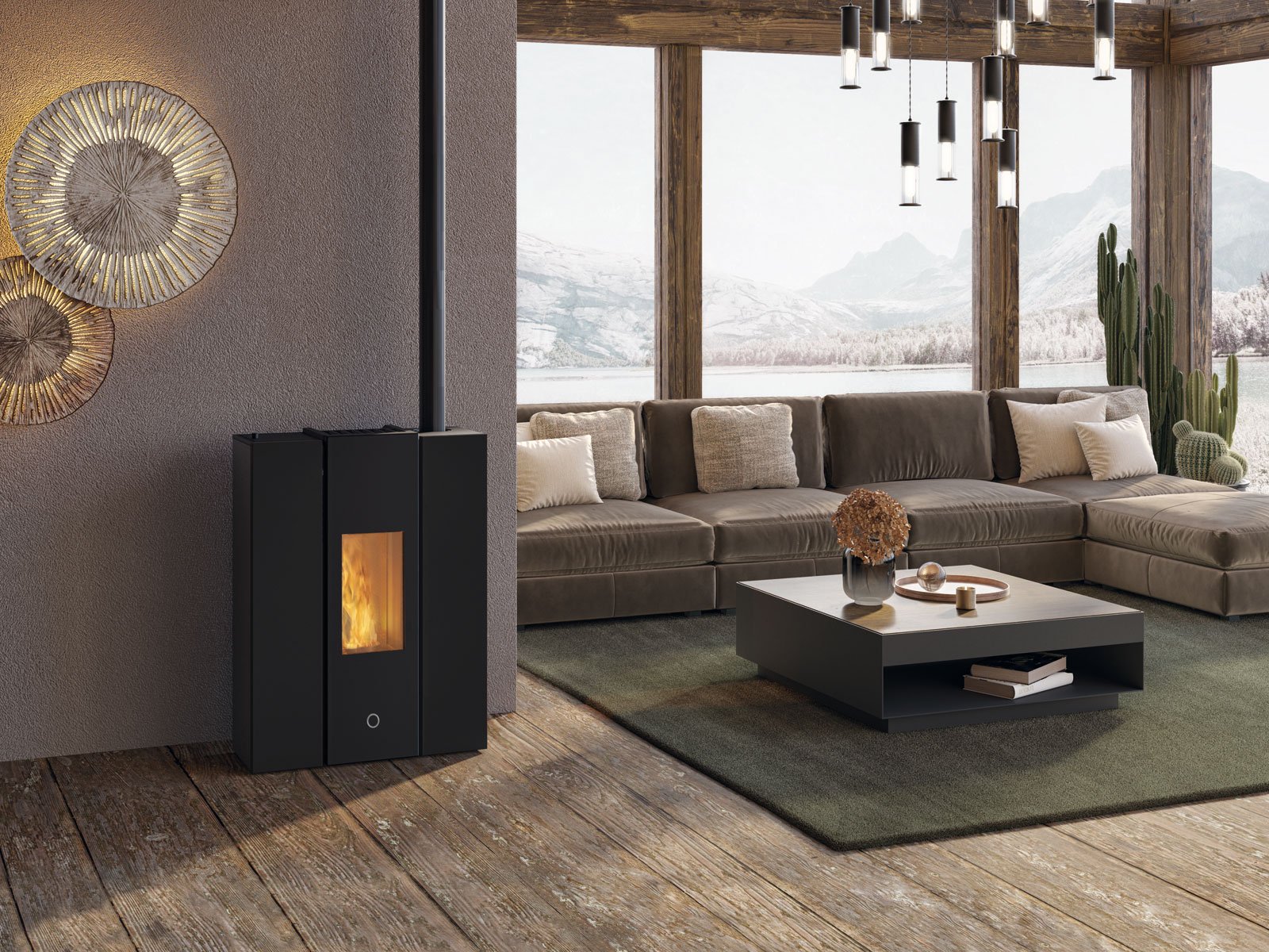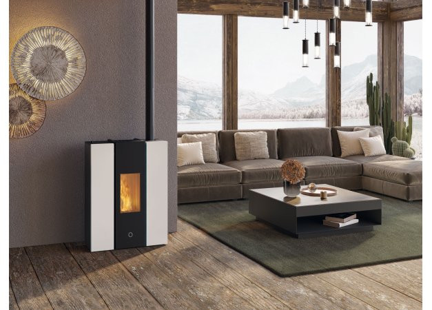- Αεροστεγής σόμπα pellet με βάθος μόνο 30 cm, ιδανική για το διάδρομο αλλά κατάλληλη για κάθε δωμάτιο του σπιτιού, με ατσάλινες μπροστινές πόρτες και ένθετα.