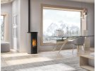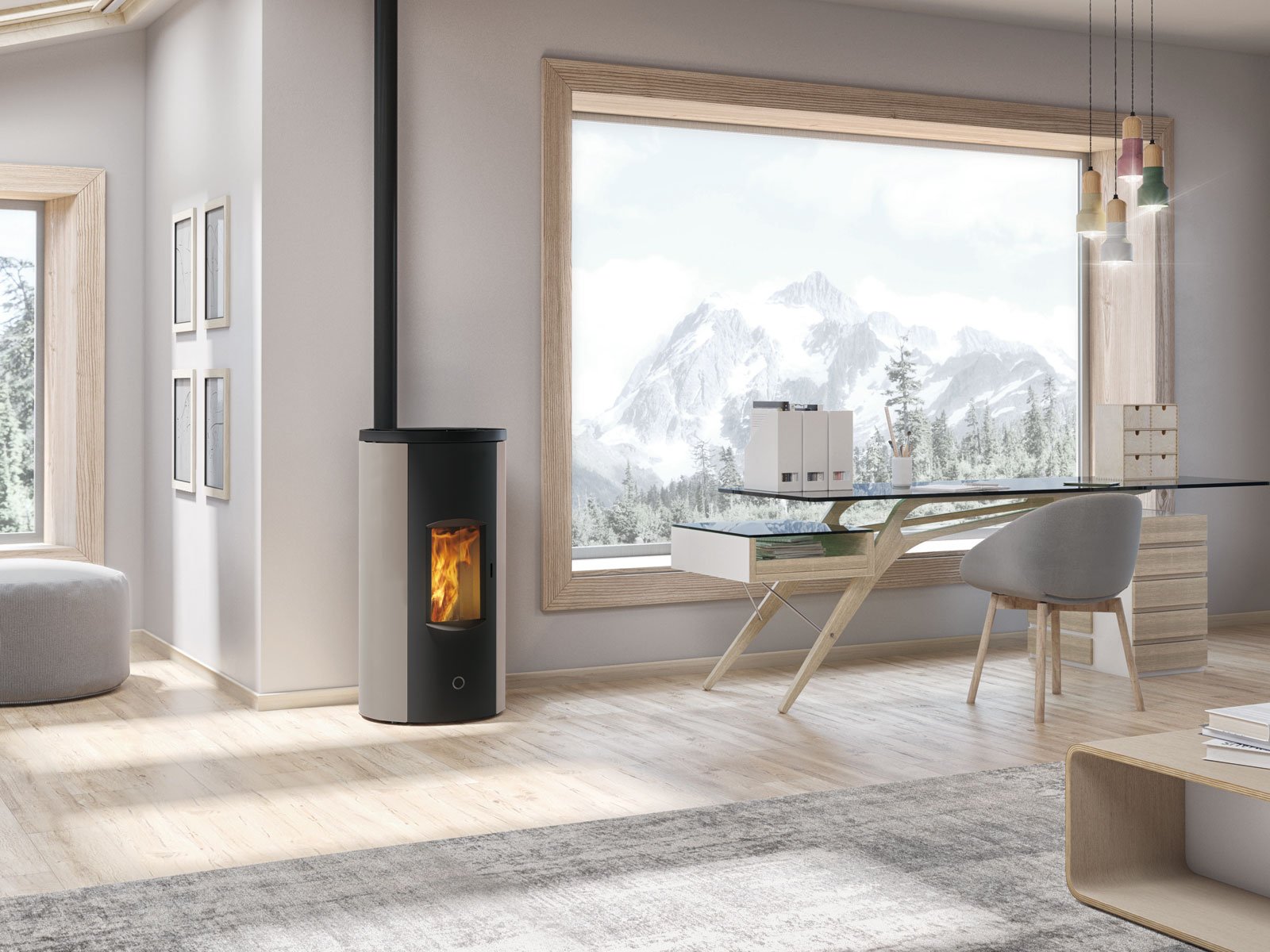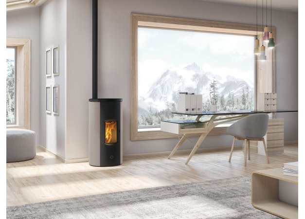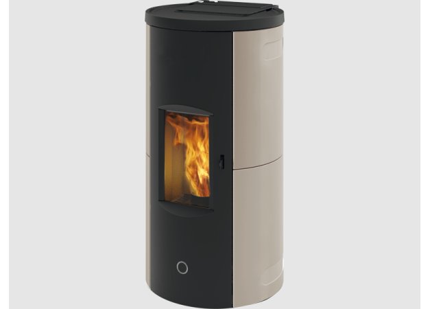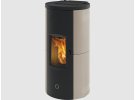 - Αεροστεγής σόμπα pellet με στρογγυλό τμήμα με καμπύλο χάλυβα και επίπεδη γυάλινη πόρτα.