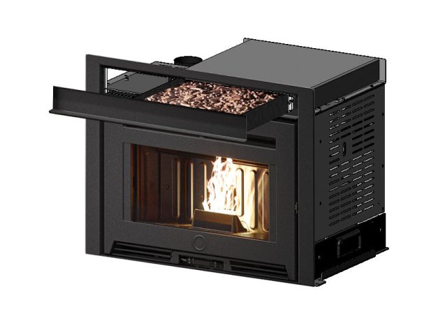 - Το ένθετο θα είναι διαθέσιμο με δύο επιλογές φόρτωσης pellet: μπροστινό συρτάρι ή καταπακτή slide.