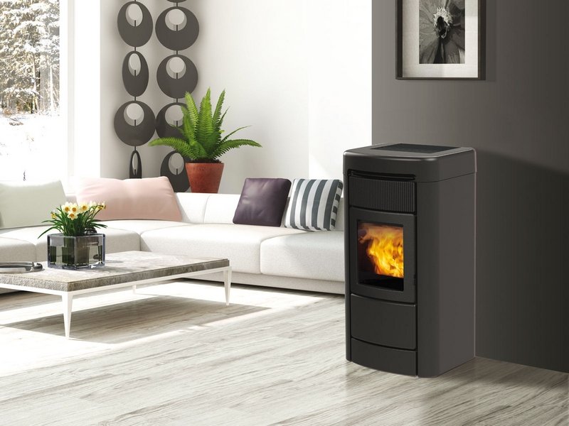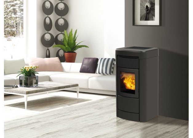- Η σόμπα παράγει ζεστό νερό για να τροφοδοτήσει τα καλοριφέρ και τις λαμαρίνες δαπέδου σε όλο το σπίτι.