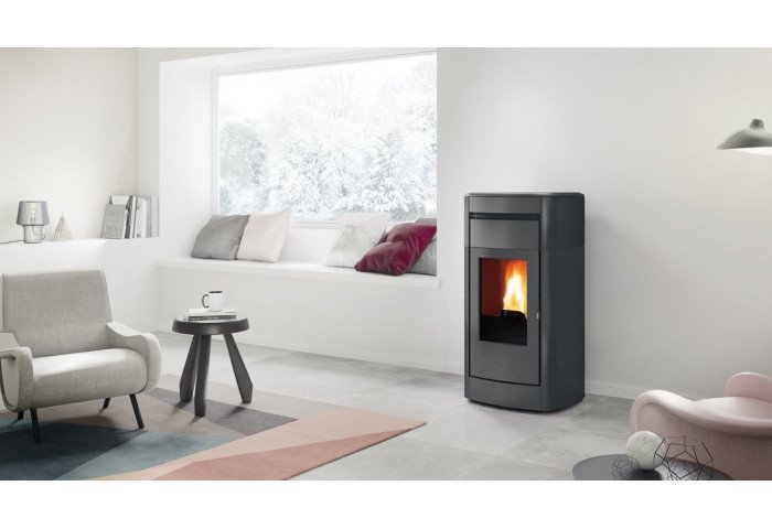 - Διαθέτει ψηφιακή οθόνη εξαφανιζόμενη, δυνατότητα ρύθμισης της υδραυλικής εγκατάστασης μέσω της οθόνης, με αναμονές για εξωτερικούς αισθητήρες, καθώς και ένδειξη αποθέματος pellet που ενημερώνει ότι η σόμπα θα έχει αυτονομία μισής ώρας περίπου από τη στιγμή που εμφανίζεται η ένδειξη.