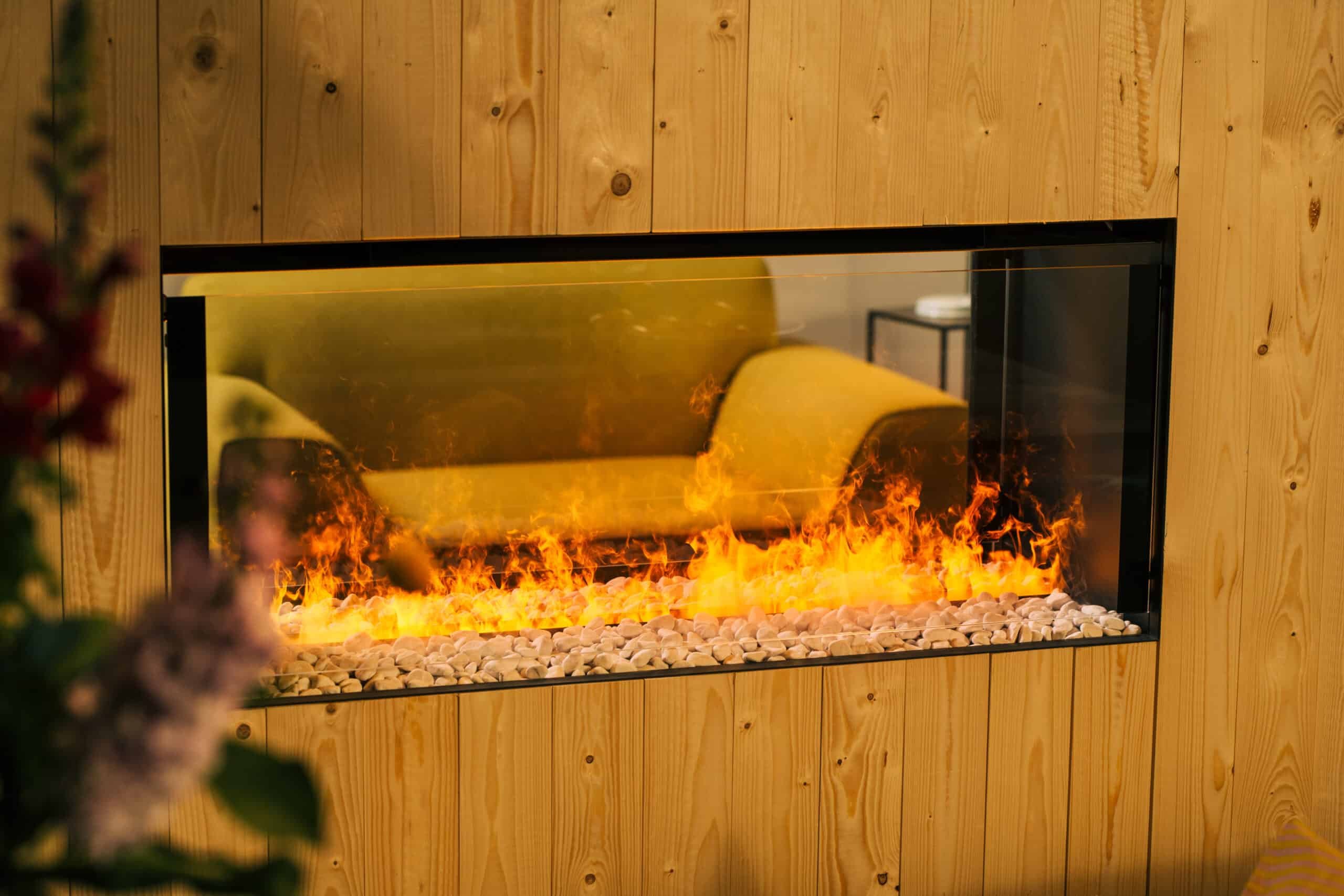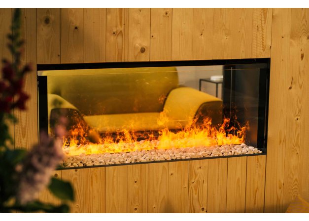 - Κρυφοί Led φωτισμοί στο επάνω και κάτω μέρος του τζακιού