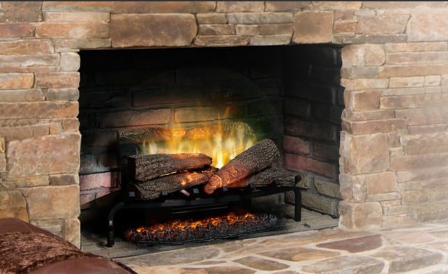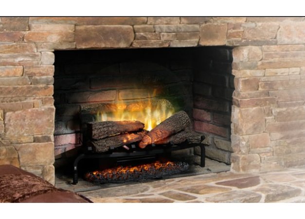 - Διαθέτει πιστή απομίμηση ξύλων πάνω σε σχάρα (στο εσωτερικό των ξύλων υπάρχουν LED φώτα που τρεμοπαίζουν και δίνουν μια αληθινή αίσθηση από ξύλο που καίγεται).