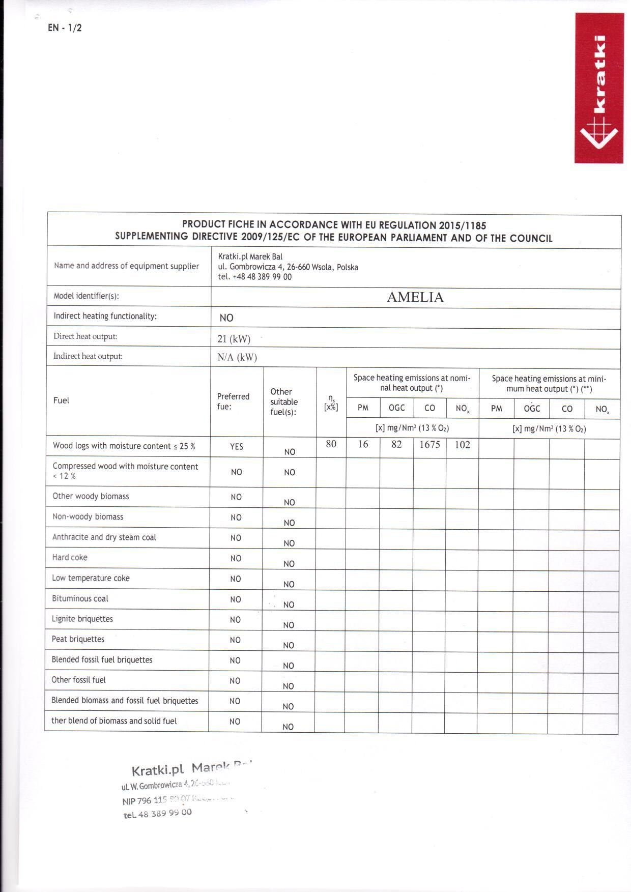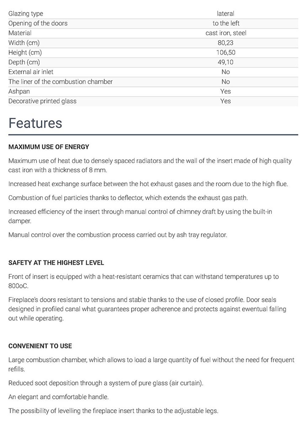 - Μαντεμένιο ενεργειακό τζάκι ξύλου Amelia L BS Deco του κατασκευαστή Kratki