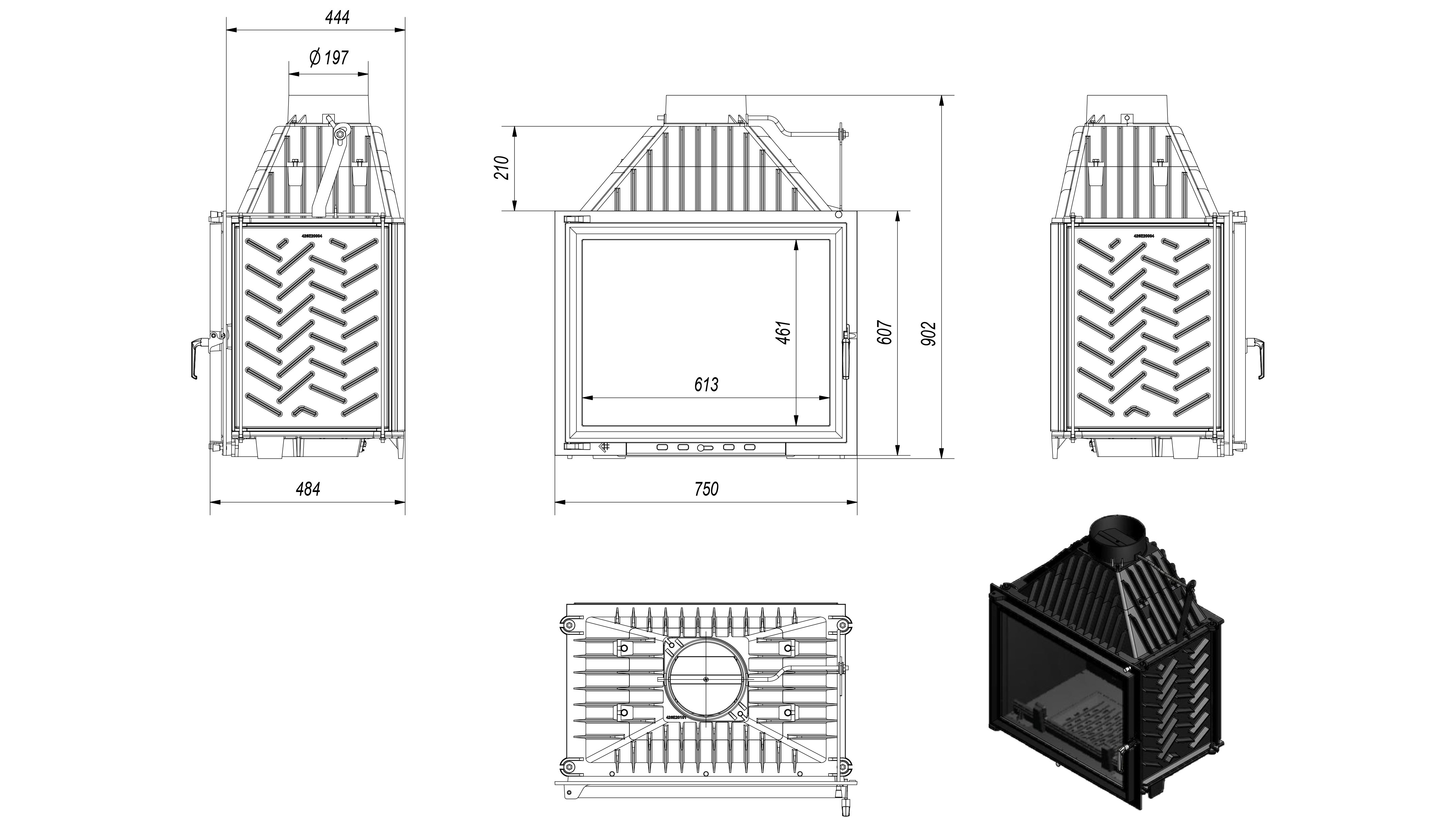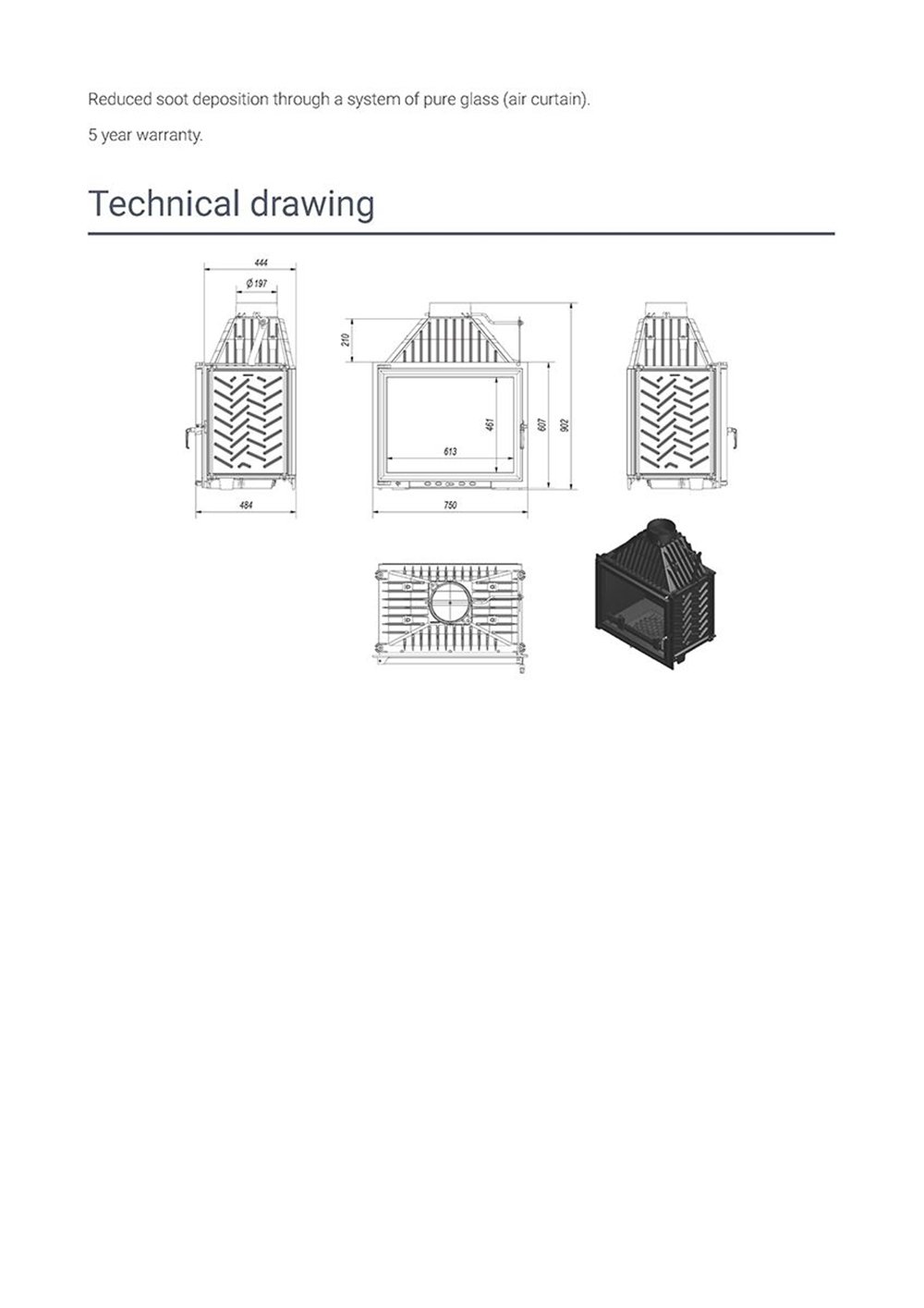 - Αυξημένη απόδοση του ενθέματος μέσω χειροκίνητου ελέγχου του ρεύματος της καμινάδας με τη χρήση του ενσωματωμένου αποσβεστήρα.