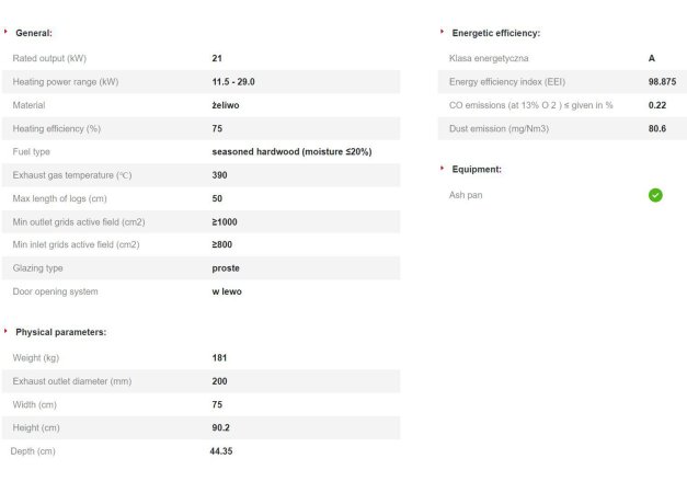 - Μέγιστη χρήση θερμότητας λόγω πυκνής απόστασης καλοριφέρ και το τοίχωμα του ένθετου από υψηλής ποιότητας χυτοσίδηρο πάχους 8 mm.