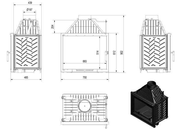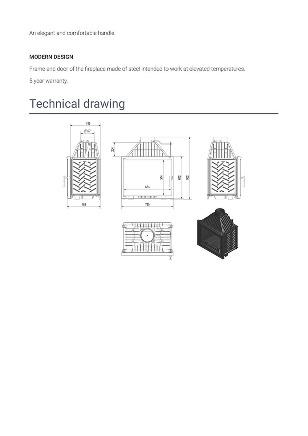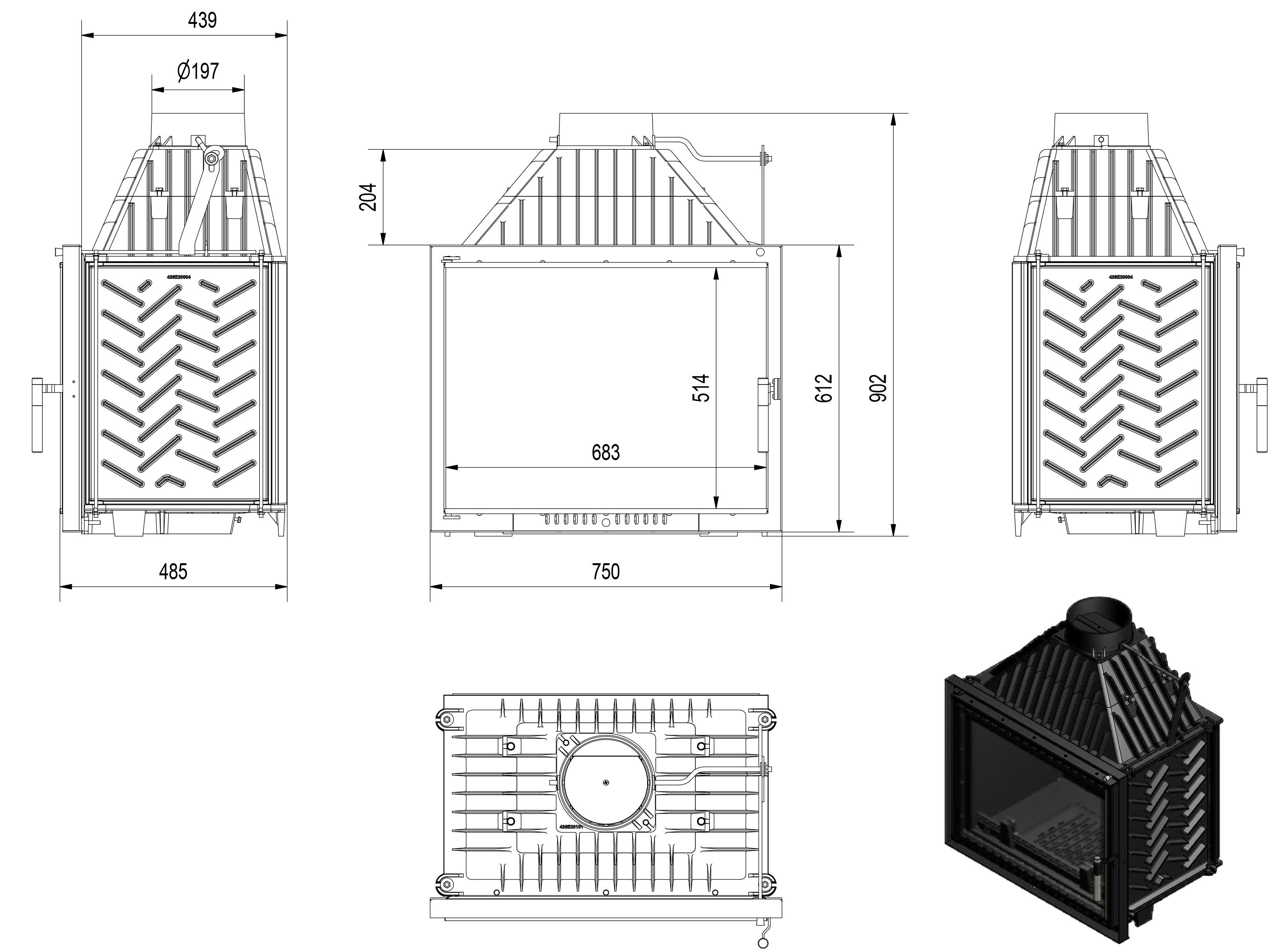 - Αυξημένη απόδοση του ενθέματος μέσω χειροκίνητου ελέγχου του ρεύματος της καμινάδας με τη χρήση του ενσωματωμένου αποσβεστήρα.