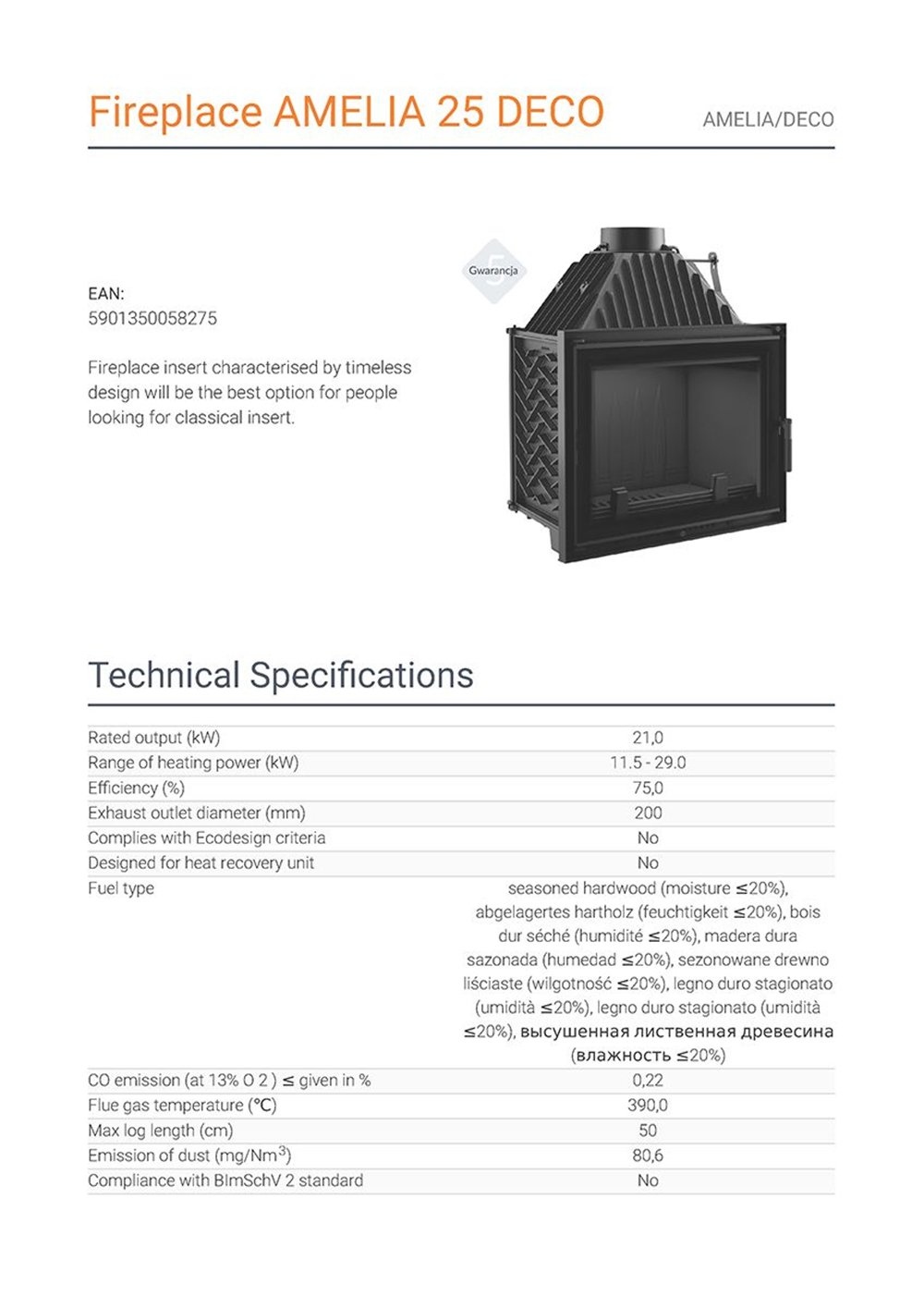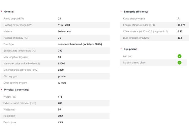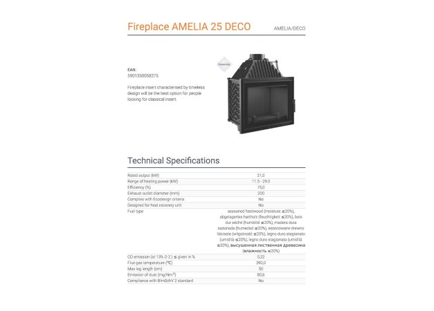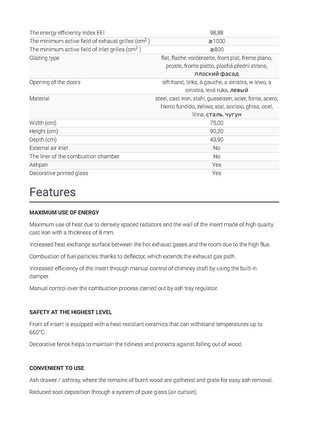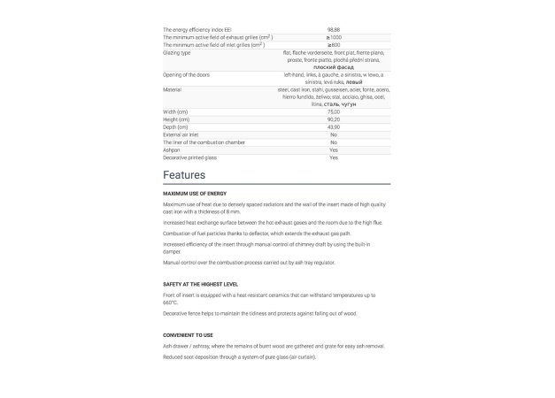 - Μέγιστη χρήση θερμότητας λόγω πυκνής απόστασης καλοριφέρ και το τοίχωμα του ένθετου από υψηλής ποιότητας χυτοσίδηρο πάχους 8 mm.