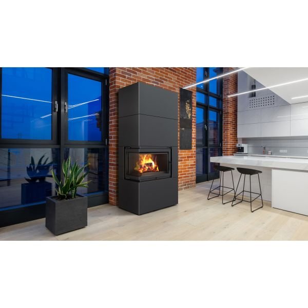 Kratki Simple Box L S Ενεργειακό Τζάκι Ξύλου 8kW Αριστερή Γωνία με Ανοιγόμενη Πόρτα Black