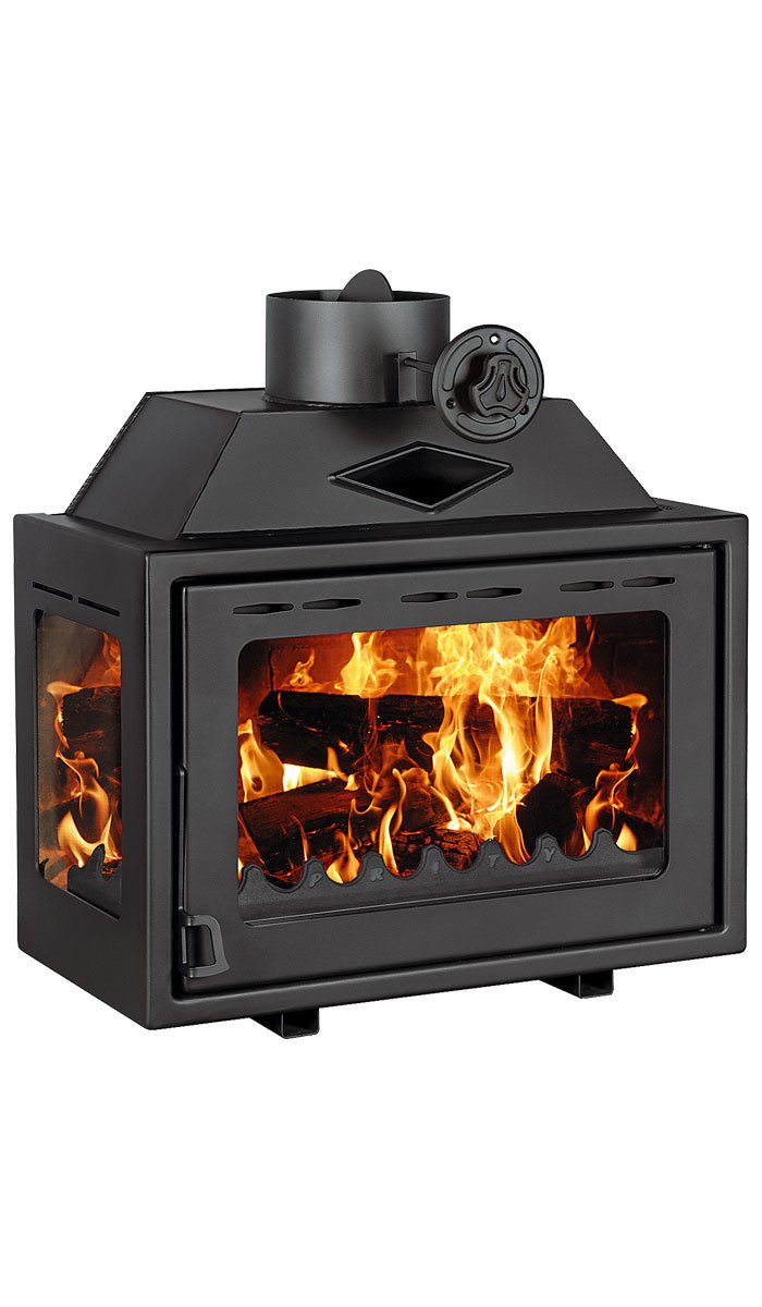Prity O Left Ενεργειακό Τζάκι Ξύλου 10kW Αριστερή Γωνία με Ανοιγόμενη Πόρτα Ανοιχτού Δοχείου