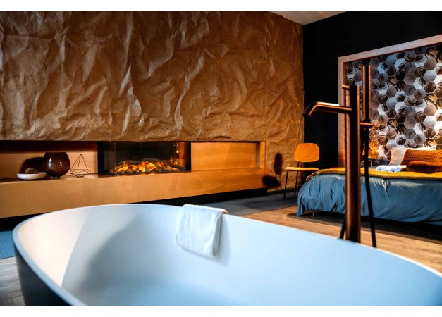 - Κρυφοί Led φωτισμοί στο επάνω και κάτω μέρος του τζακιού