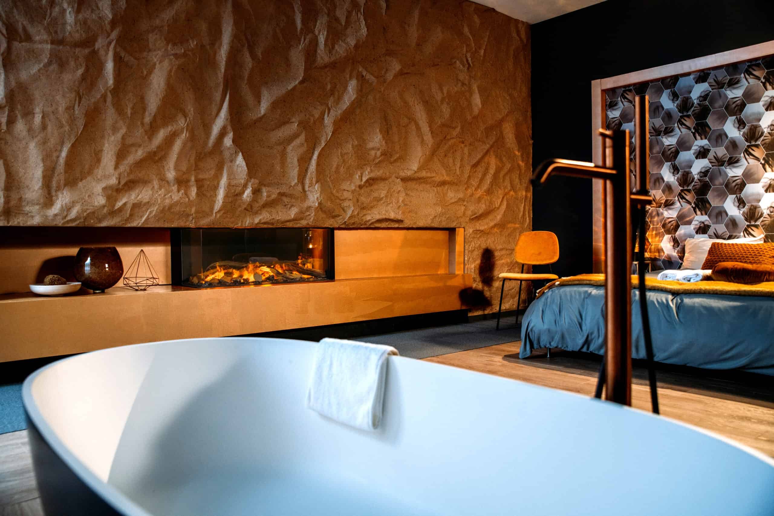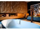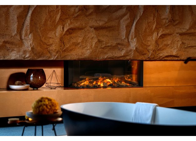 - Κρυφοί Led φωτισμοί στο επάνω και κάτω μέρος του τζακιού