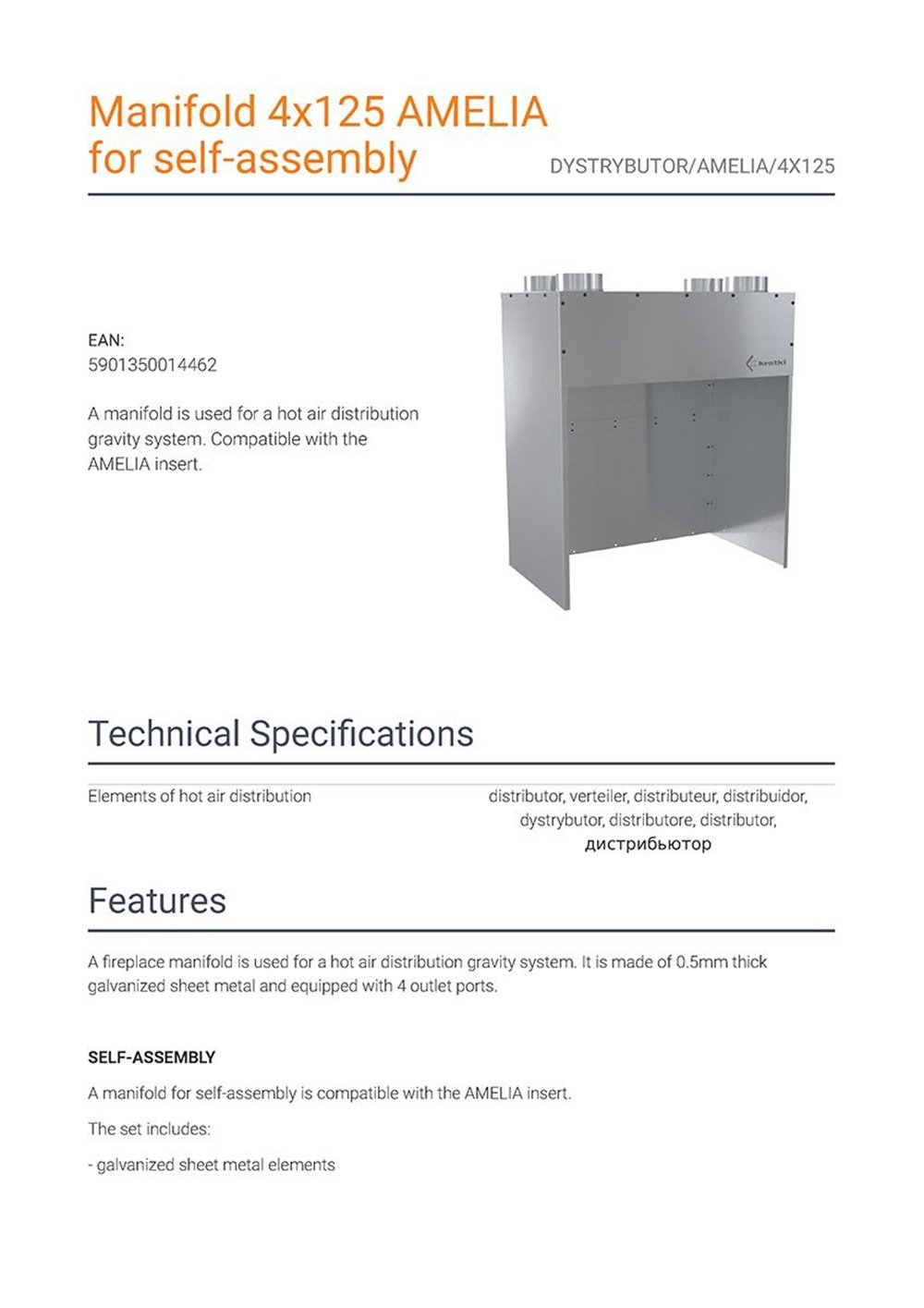 Kratki DYSTRYBUTOR/AMELIA/4X125 Αεροθάλαμος για Ενεργειακό Τζάκι